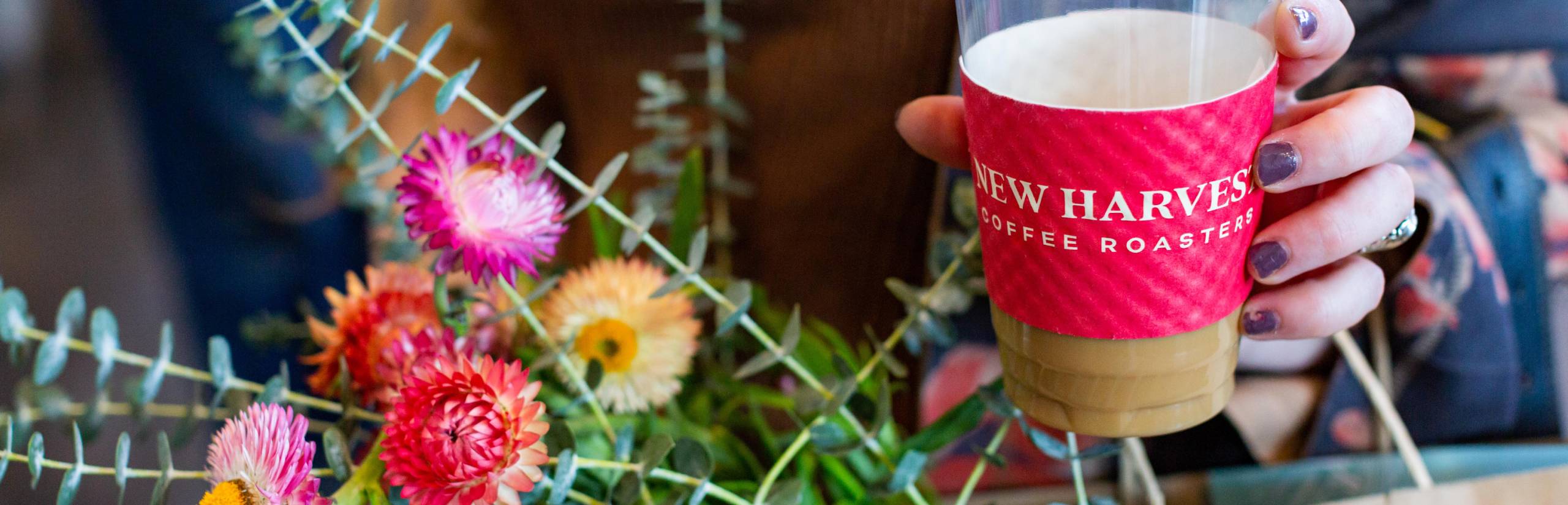 Our brick-and-mortar cafe features New Harvest coffees and a curated cocktail menu served in a stunning space that overlooks our roasting operations.